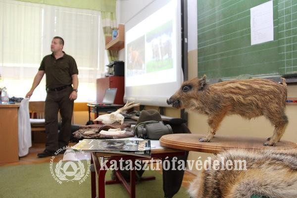 Az iskola tanárai a Baranya Megyei Katasztrófavédelmi Igazgatóság Hatósági Osztályának munkatársát, Ádám Jenő tű. századost, kérték fel, hogy tartson előadást az általános iskola első és második osztályos tanulóinak a vadászatról, mint szakmáról, valamint az ahhoz szorosan kapcsolódó erdő- és erdőtűz védelem témákban.