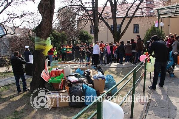 A Pécs Plázában, illetve a megyei katasztrófavédelmi igazgatóságon és városi kirendeltségeken kihelyezett adomány pontoknál lehetett leadni a játékokat, könyveket, ruhákat, amiket a rendvédelmi szervek és civil szervezetek március 28-án délután együtt szállítottak a Megye utcai gyermekotthonba, és adták át a gyerekek részére.