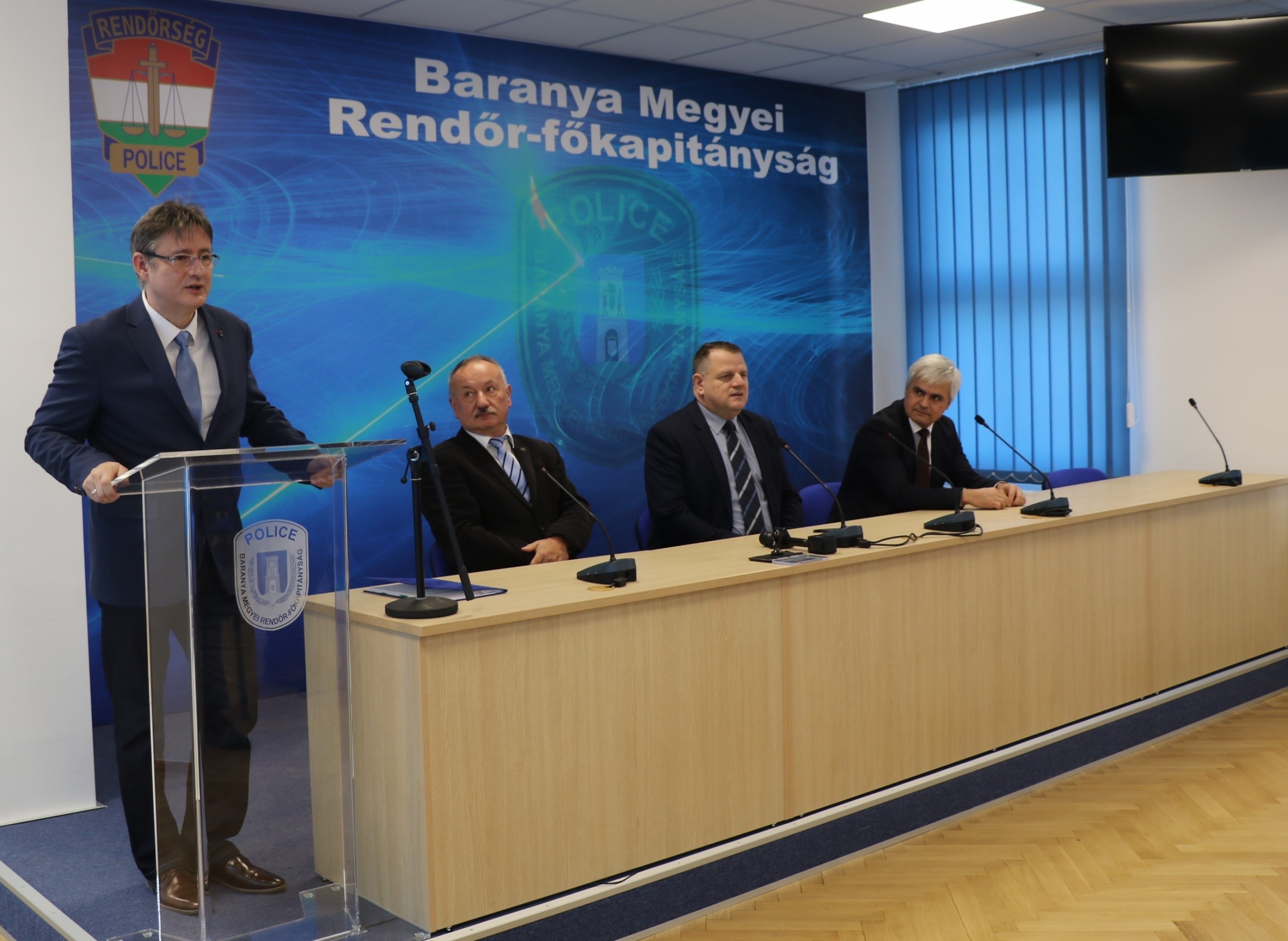 Dr. Gulyás Zsolt rendőr ezredes, megyei rendőrfőkapitány, valamint a Pécsi Tudományegyetem részéről Dr. Miseta Attila János rektor és Jenei Zoltán kancellár együttműködési megállapodást írt alá 2020. január 9-én a Baranya Megyei Rendőr-főkapitányságon megtartott munkaértekezleten.