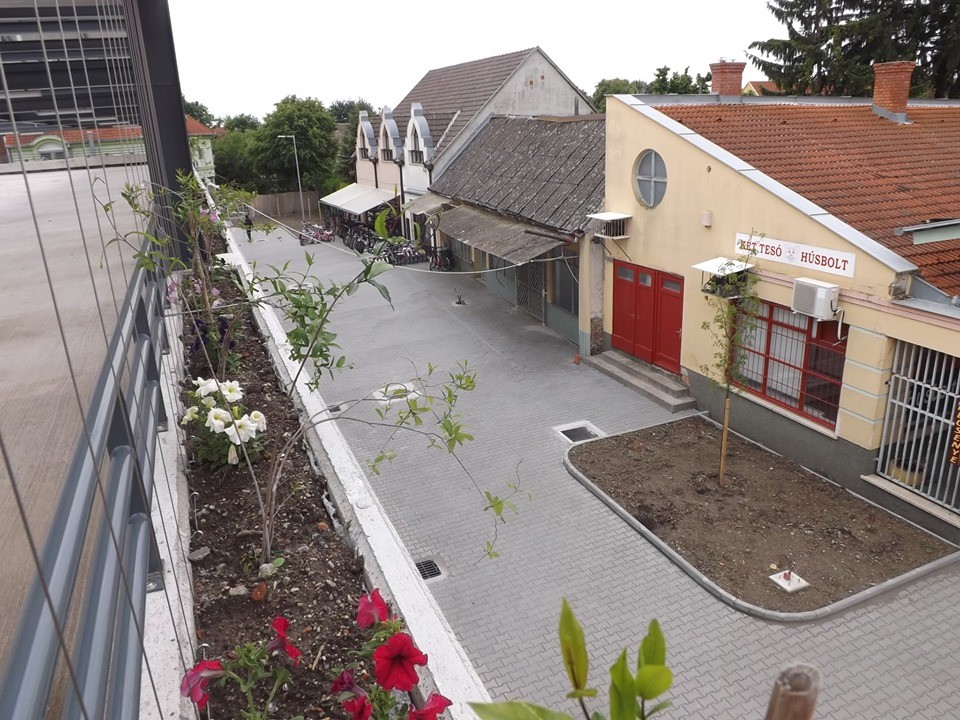 Helyükre kerültek a díszburkolatok, kész az emeleti parkoló, annak tetején rögzítve a napelemek, az elektromos autókat kiszolgáló töltőállomás ugyancsak várja az első, környezetbarát járműveket. A majdan a piac területén használandó eszközök beszerzése szintén megkezdődött, hamarosan érkeznek – többek között – az elárusítóasztalok és a korszerű takarítógépek. A beruházó önkormányzat fontosnak tartotta azt is, hogy tetszetős környezetben találkozhassanak itt a vevők és a kereskedők, őstermelők. Ennek jegyében parkosítottak, számos cserjét és fát ültettek el, többek között vöröslevelű kőriseket, míg az emeleti parkolót övező növényszigetekbe – a csüngőpetúniák mellé – huzalra futtatott görögtekercsek és kúszóloncok kerültek: ezek azon kívül, hogy szebbé, hangulatosabbá teszik a környezetet, egyszersmind árnyékot is adnak majd a tűző Nappal szemben.
